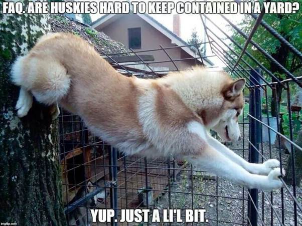 There are two ways to make sure your husky is still in your backyard when you get home from work. The first is to build a fully-enclosed cube of mesh, concrete and steel with double gates, and lock them in there. With a padlock.